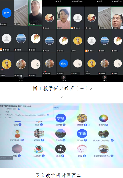 学院院长扎其劳教授、党委副书记李联和教授、教学副院长包霞副教授全程参与,在分享自己的教学经验的同时对本次教研活动进行总结发言,充分肯定本次活动的意义与效果,并鼓励即使恢复线下教学,也可以经常性开展线上教学研讨,善于挖掘身边优秀案例,同时发挥老教师的“传、帮、带”作用。