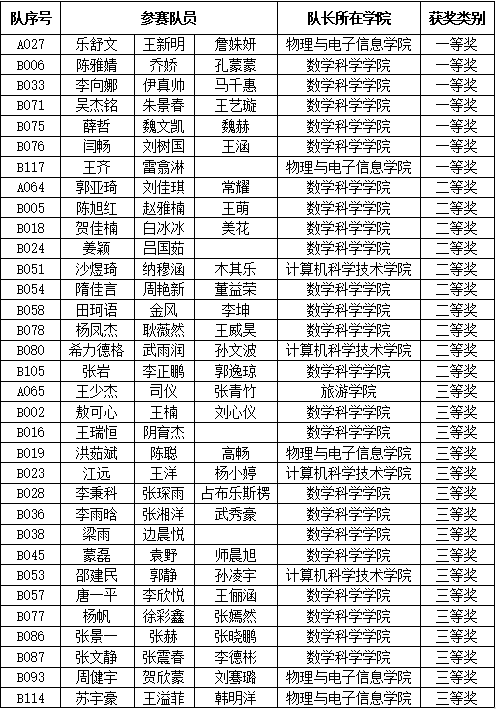 必赢242net官网第七届数学建模竞赛暨2024年全国大学生数学建模竞赛校级选拔赛于2024年6月22日举行。次比赛共有来自必赢242net官网、物理与电子信息学院、计算机科学技术学院、地理科学学院、旅游学院、教育学院等六个学院共118支队伍参赛,组委会共收到论文110篇。经过组委会的认真评阅,共评出一等奖7组,二等奖10组,三等奖16组。具体名单如下: