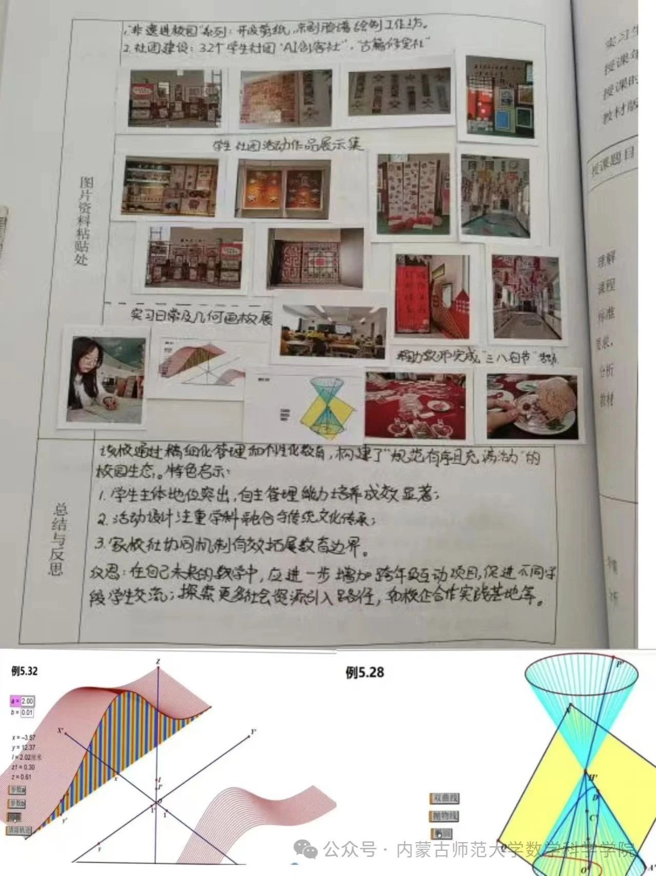 在备课和授课过程中,我不断回顾和梳理数学专业知识,加深了对数学概念、定理和公式的理解。同时,为了更好地讲解知识,我查阅了大量的教学资料,拓宽了自己的知识面,对数学学科的前沿知识和教学方法有了更深入的了解。并成功实现了将几何画板技术应用课堂,利用科学技术化解数学抽象思维过程。