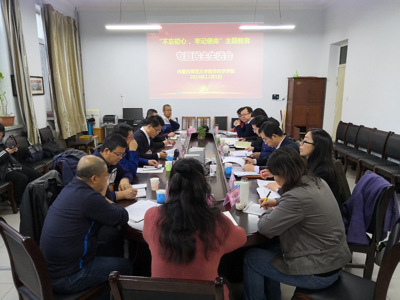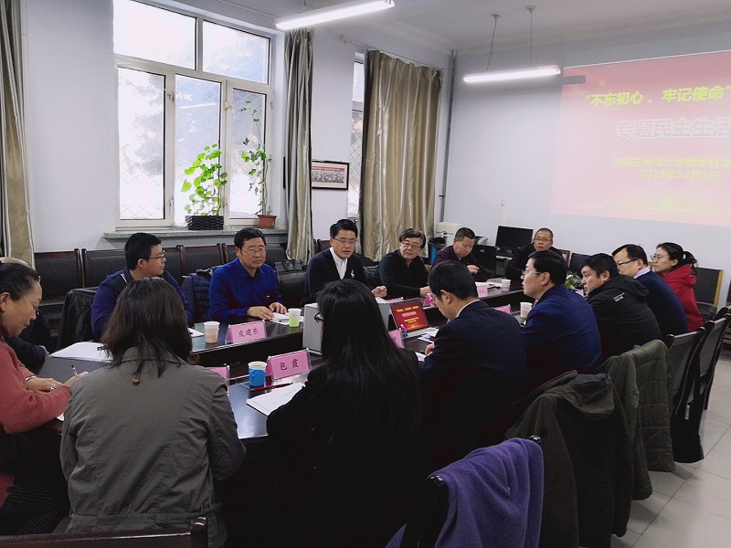 12月5日下午,必赢官网在校本部会议室召开了领导班子“不忘初心、牢记使命”专题民主生活会,自治区主题教育第九巡回指导组武家田同志和学校主题教育第五指导组克金布、包铁龙、周绍渊三名同志全程参加并指导了本次会议。会议由学院党总支书记扎其劳同志主持,列席会议的还有学院所有环节干部和各党支部书记。