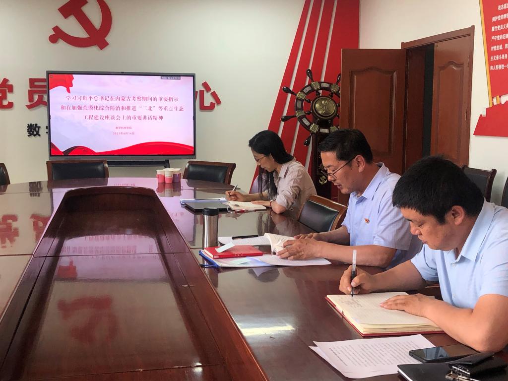 会上由学院院长扎其劳领学了习近平总书记在内蒙古考察期间的重要指示和在加强荒漠化综合防治和推进“三北”等重点生态工程建设座谈会上的重要讲话精神。他指出,在全面学习贯彻党的二十大精神的开局之年、深入开展主题教育的关键时刻,习近平总书记亲临内蒙古考察并发表重要讲话,充分体现了对内蒙古各族人民的深切关怀。要切实把思想和行动统一到习近平总书记重要指示和重要讲话精神上来,紧密结合学院工作实际,培养高素质人才,服务地方经济社会发展,以实际行动拥护“两个确立”、践行“两个维护”。