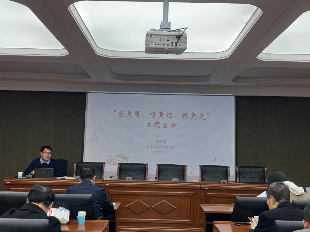12月14日下午,必赢242net官网在赛罕校区文史类一号会议室举办“感党恩、听党话、跟党走”主题宣讲会,学院党委书记陈宏研面向学院全体教职工作了主题宣讲。