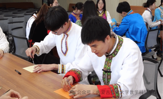 支部书记刘沙沙老师和三位学生党员胡佳莹、祁浩轩、张帅华以生动的语言将数学家明安图、苏步青、阿拉坦仓的数学故事娓娓道来,台下师生听得入神,民族自豪感与爱国情怀在每个人心中激荡。