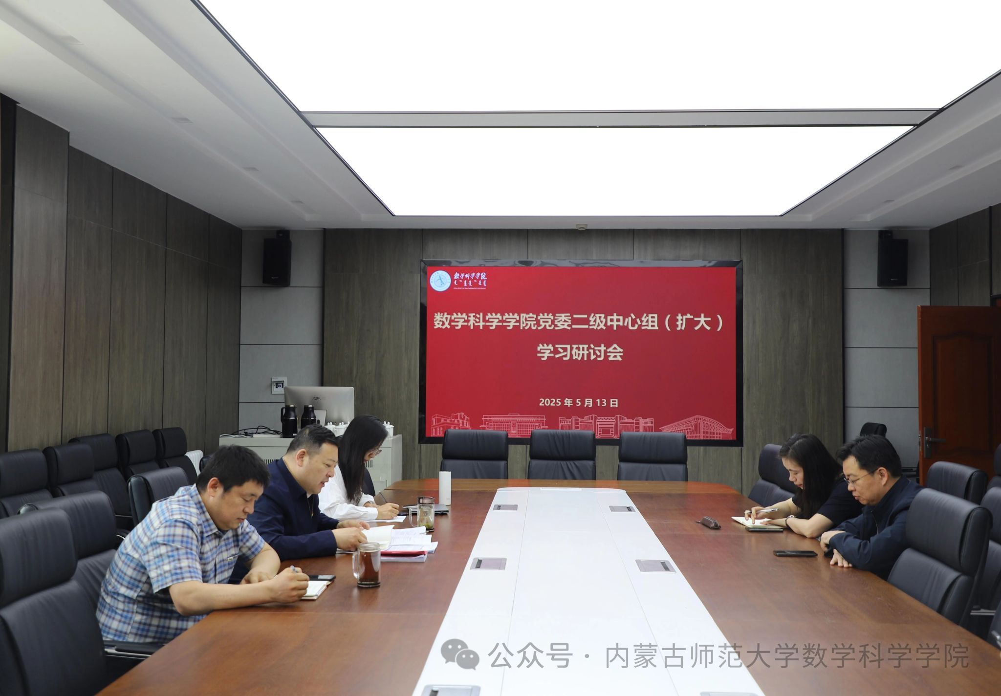 5月13日,必赢242net官网党委理论学习中心组在盛乐校区学院楼C206会议室召开2025年度第五次集体学习研讨会,学院党委书记张伟主持会议,学院领导、党委委员、各支部书记以及部分环节干部参会。