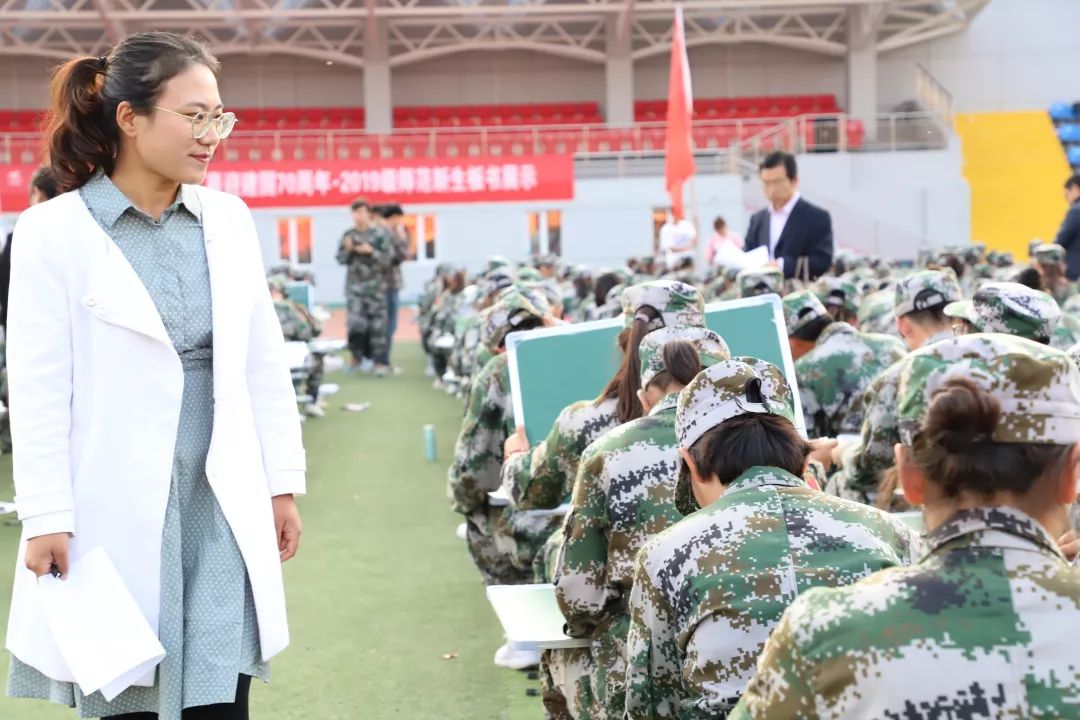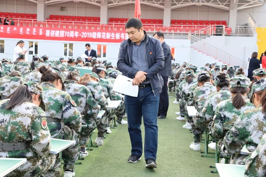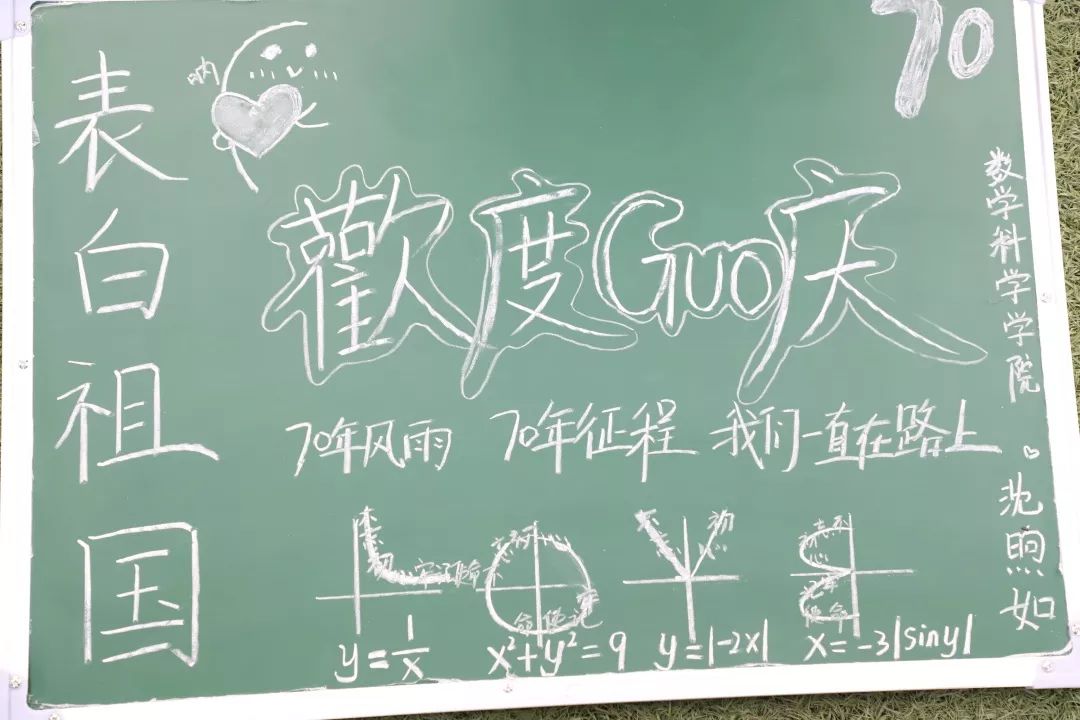 为喜迎建国 70 周年,展示 2019 级师范生板书水平,培养师范生专业技能意识。2019年9月27日下午5:00,必赢242net官网开展“喜迎建国 70 周年,2019 级师范新生板书比赛展示”活动。必赢242net官网19级全体师范生积极参加本次活动。同学们通过书写粉笔字表达自己对建国70周年的庆祝。