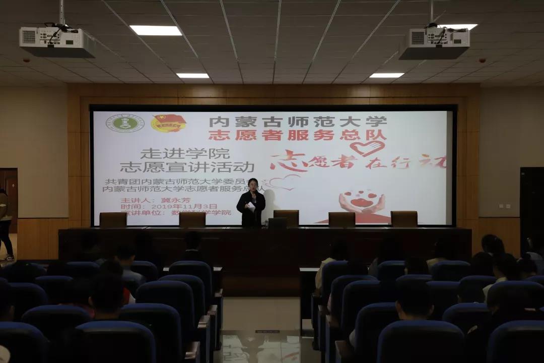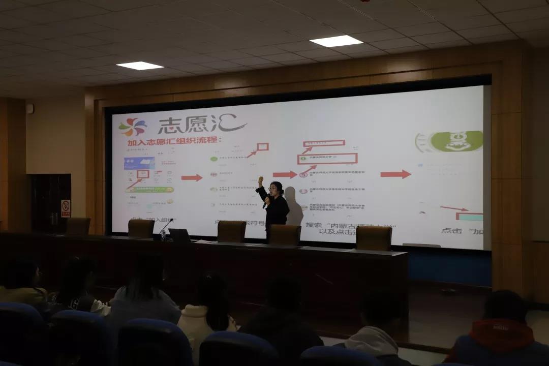 2019年11月3日,为使各位同学积极投入志愿服务活动,更好地了解“志愿汇”APP,必赢242net官网志愿者服务总队负责人冀永芳同学向必赢242net官网各班班委及学生代表就志愿服务活动及“志愿汇”APP相关问题进行宣讲,此次志愿宣讲活动于学生事务中心一楼报告厅举行。
