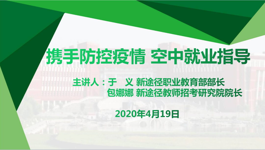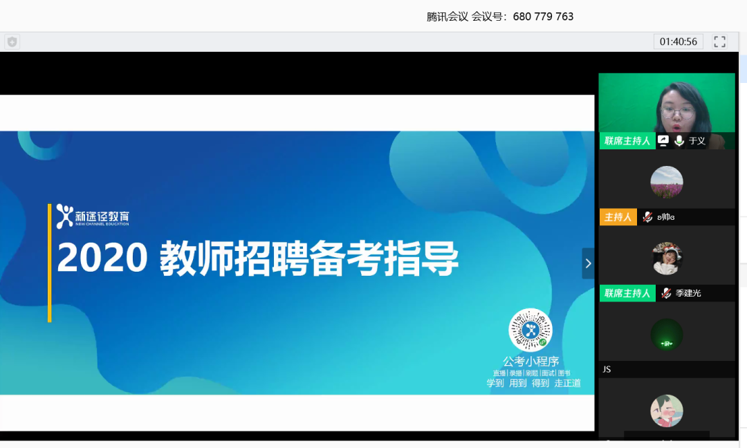 为帮助必赢官网2020届毕业生解决在择业、就业过程中遇到的问题和困惑,必赢242net官网特别邀请到新途径职业教育部部长于义老师、新途径教师招考研究院院长包娜娜老师于2020年4月19日为毕业生们进行线上就业指导讲座。学院党委副书记、副院长季建光老师,学就办负责人李帅老师、辅导员张惠清老师及2020届毕业生参加此次会议,会议由李帅老师主持。