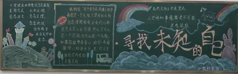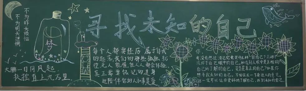 此次“寻找未知的自己”绘画心理团体辅导活动,促进同学们建立自尊自信、理性平和、积极向上的健康心态,让同学们去寻找未知的自己,发现自己的另一面,并且拥有一个健康的心灵。希望同学们关爱自我、善待自我,放下戒备和隔阂,以发自内心的爱来善待和关爱他人及社会,传播正能量,共创美丽校园、和谐社会。