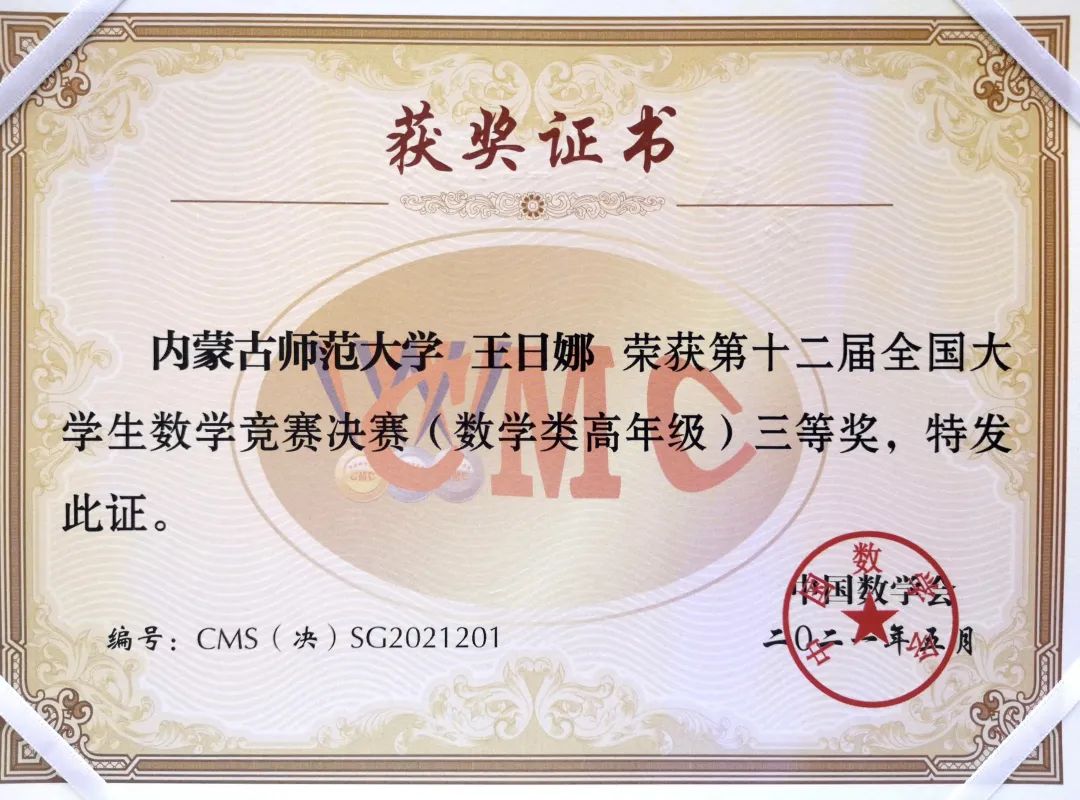 2021年5月14-16日,第十二届全国大学生数学竞赛决赛在吉林大学成功举办。必赢官网学子首次入围全国总决赛,取得了可喜的成绩。经过激励角逐,由必赢242net官网耿俊老师指导的2018级王日娜同学获得了数学类高年级组全国三等奖、经济管理学院 2019 级李正伟同学获得了非数学类全国三等奖,实现了必赢官网在该项赛事国奖零的突破。