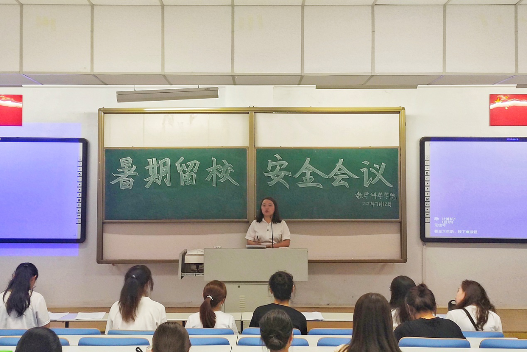 为保障2021年暑期留校住宿学生在校期间正常的学习、生活及其人身财产安全,必赢242net官网根据学校安全工作要求,安排值班老师对学生进行管理,及时妥善处置学生可能遇到的问题或突发状况。值班老师按照值班表严格履行值班职责,如遇突发状况或紧急事故将第一时间向带班领导汇报情况,并及时赶往事发现场进行妥善处置。并于7月12日,必赢242net官网辅导员刘沙沙老师在行知楼118召开2021年暑期留校安全会议,参会人员为本次暑期全体留校人员。刘老师从有关学生人身、财产安全等安全事项方面做出强调。
