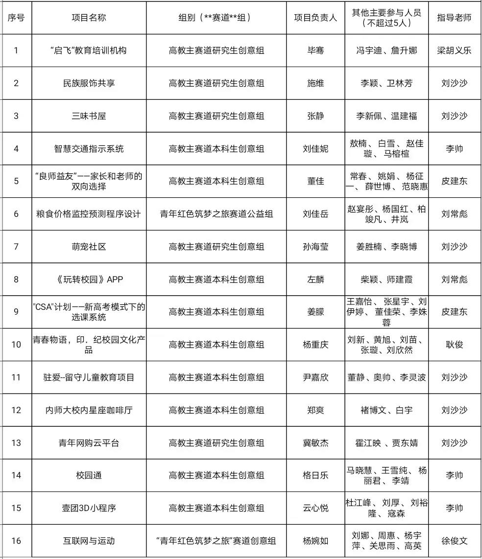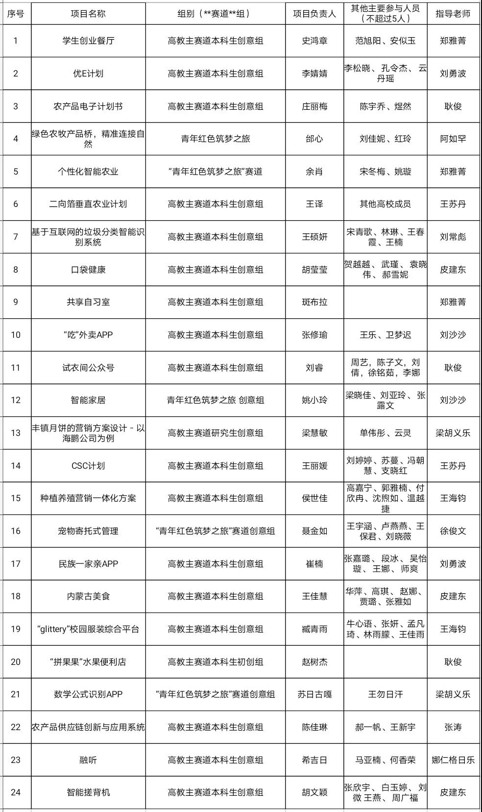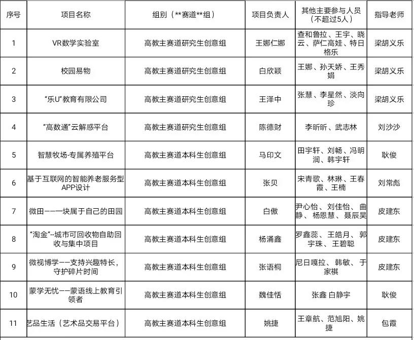 第七届中国国际"互联网+"大学生创新创业大赛必赢242net官网院赛初审名单: