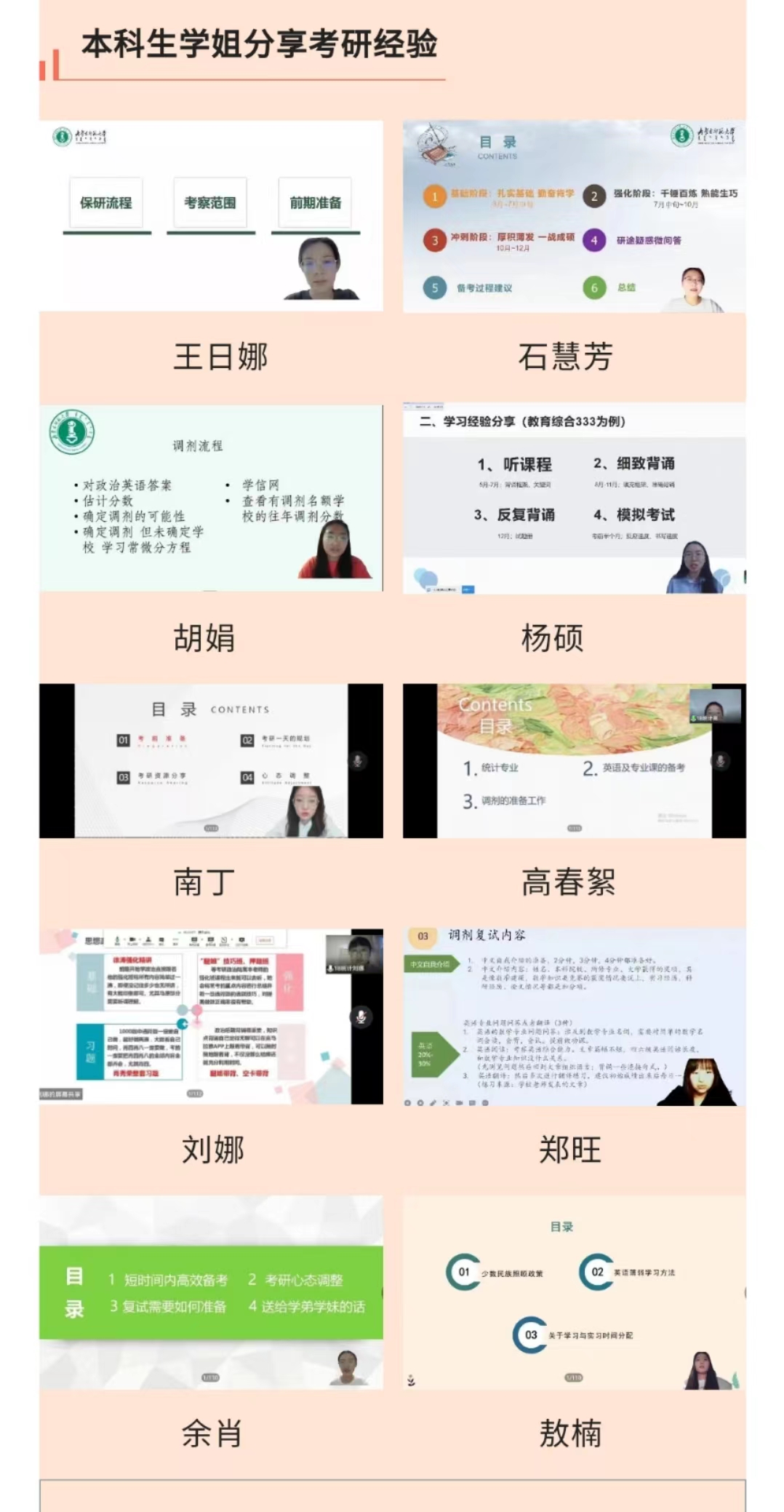 为树立优良学风,深入了解考研全过程,及时解决考研中遇到的问题,帮助同学们在明年的考试中有更好的发挥。必赢242net官网于2022年5月19日举办线上考研经验交流会,此次会议一共邀请到13位申博和考研成功的优秀学子向同学们分享经验。