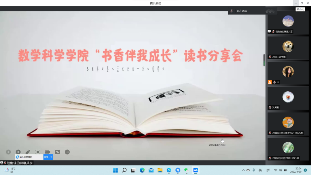 为了铸牢中华民族共同体意识,营造良好的读书氛围,推进书香校园建设,必赢242net官网于4月29日举办“书香伴我成长”线上读书分享会。本次分享会邀请了五位必赢242net官网的优秀学子为同学们分享他们的读书经历。