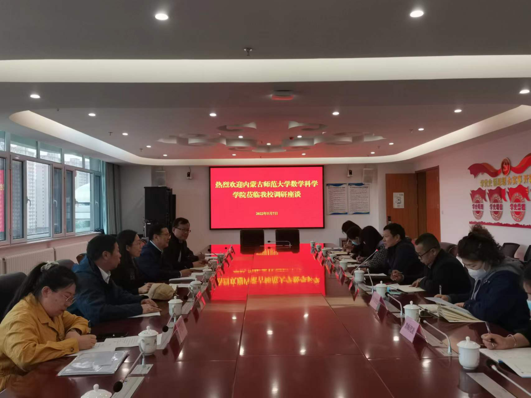 参加本次访企拓岗专项行动调研交流座谈会的有呼和浩特市第三十中学校长周全胜、副校长吉日嘎拉图,以及小学、初中、高中教务处负责人和数学教研组教师们,其中有7名学生为必赢官网培养的优秀毕业生,必赢官网院长扎其劳、副书记李联和、副院长包霞、副书记季建光、数学系主任毕力格图、学生工作与就业办公室副主任刘沙沙、就业工作负责人萨如拉7人参加座谈。