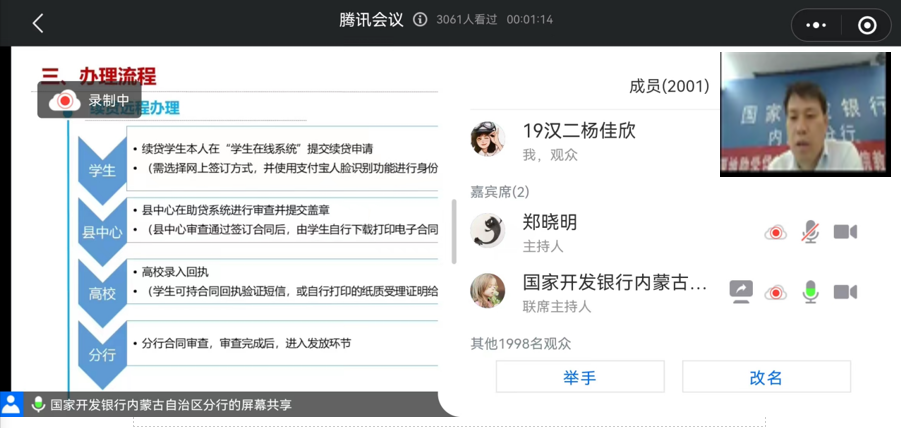为进一步提高学生诚信感恩意识和自强自立精神,加大国家资助政策宣传力度,做好资助育人工作,党委学工部(学生工作处)于2022年6月2日下午3点举办诚信教育专题讲座,必赢官网办理了生源地助学贷款的学生线上观看。