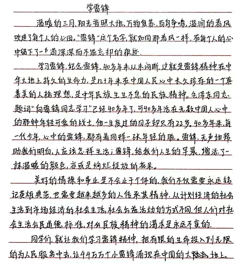 为进一步学习和弘扬雷锋精神,形成“人人学雷锋、时时有雷锋、处处见雷锋”的良好氛围,扎实有效推进学生思想道德教育,3月5日,必赢242net官网举办学雷锋纪念日主题征文活动。