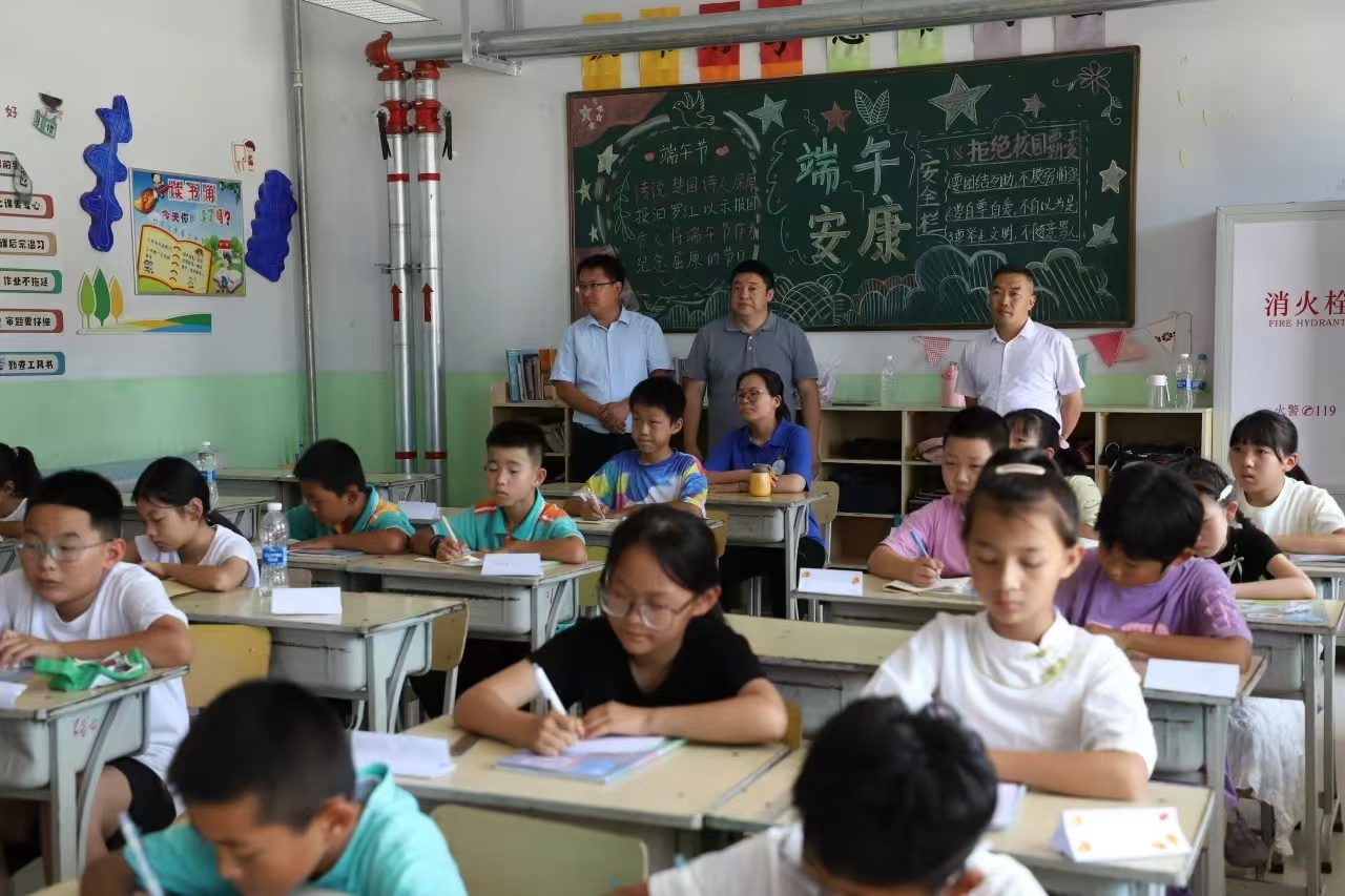 实践活动的第四天,学院党委书记陈宏研,党委副书记、副院长季建光一行来到公喇嘛小学看望社会实践团队,走进课堂观摩志愿者们的授课情况,并向志愿者们表示亲切的问候与关心,对团队的辛勤付出给予了充分肯定,勉励志愿者们珍惜实践机会,把课堂所学知识运用到实际教学活动中,在火热实践中磨砺和成长。同时强调了要注重安全,服从管理,遵守纪律,确保实践活动顺利有效开展。
