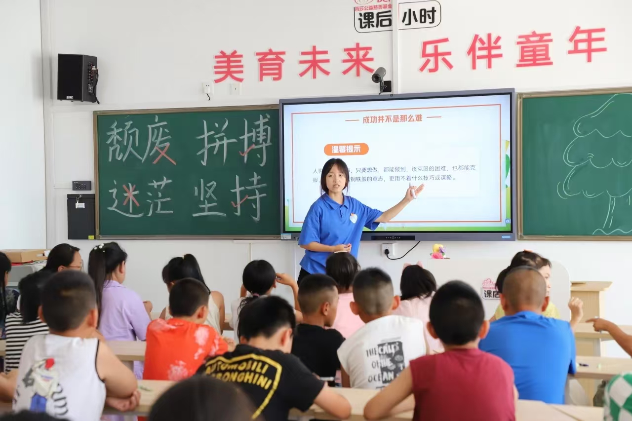 “三下乡”社会实践活动接近尾声,按照教育关爱服务团计划组织召开了一次励志教育主题班会。志愿者们组织学生写下自己的优缺点和个人理想,并结合志愿者自身的学习经历,用形象通俗的语言讲述了勤奋学习、立志成才的故事,引起大家的理解和共鸣,为青少年提升学习动力、树立个人理想指明方向。志愿者们还利用课内课外时间和契机,抓住一切机会和孩子们谈书籍、谈理想、谈体会,引导学生进行深入思考和拓展探索,进一步营造了积极向上的学习氛围与成长环境。