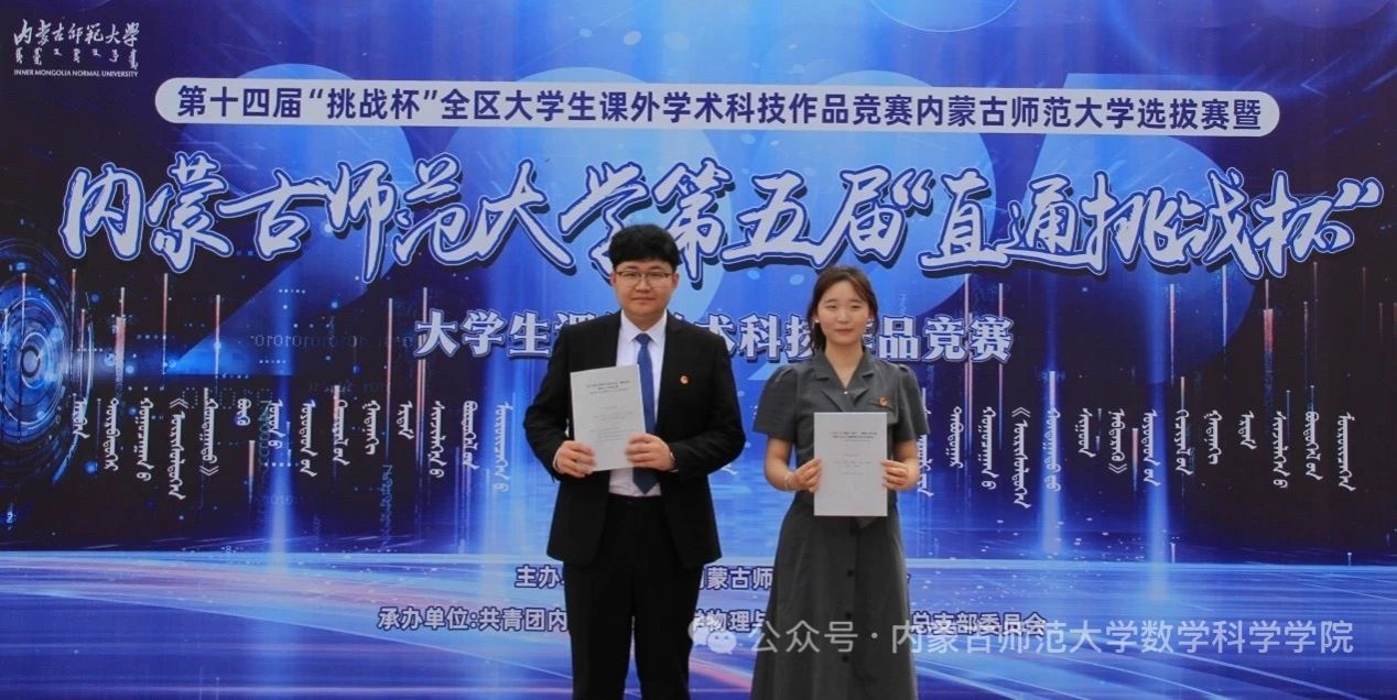 4月26日,必赢官网2023级数学与应用数学4班白昊杨、王婧婷,2023级数学与应用数学3班王佳乐作为“北疆教育薪火公费定向师范生服务队”的项目成员,其团队共同调研成果《优化公费定向师范生学习生态,赋能地方教育人才培育工程—一内蒙古自治区公费师范生学习状况调查报告》在第五届“直通挑战杯”校决赛中斩获哲学社会科学类社会调查报告赛道三等奖。