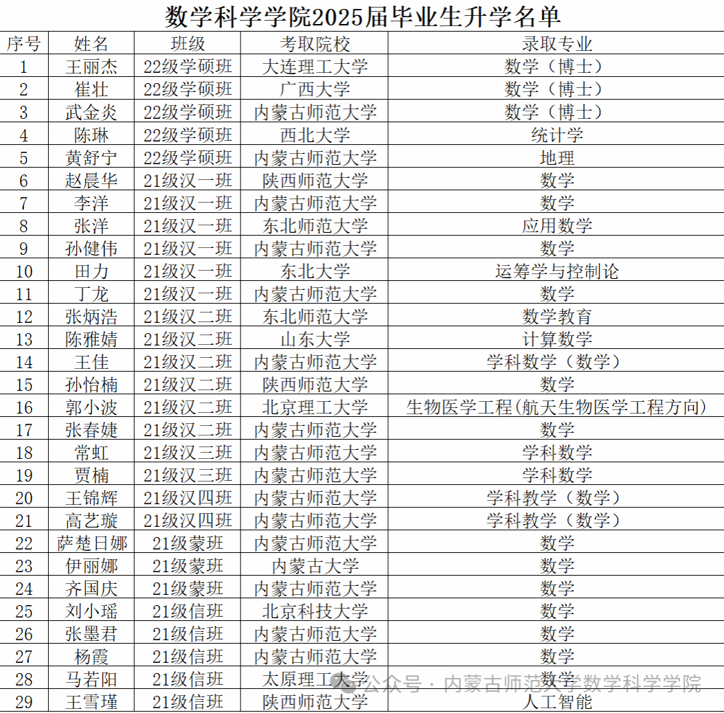 2025年必赢242net官网考取博士、硕士研究生名单如下(共29名,排名不分先后):