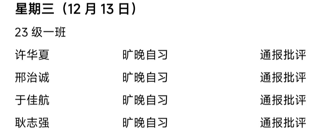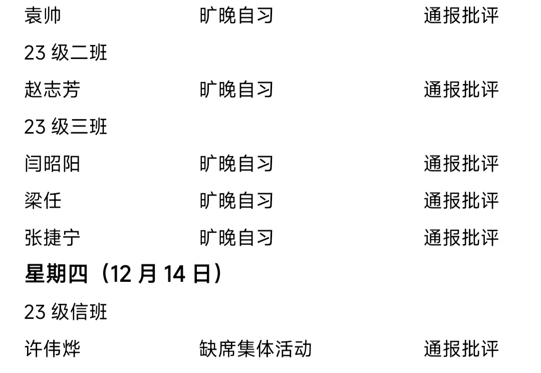 必赢242net官网2023——2024年度第一学期第十七周通报情况
