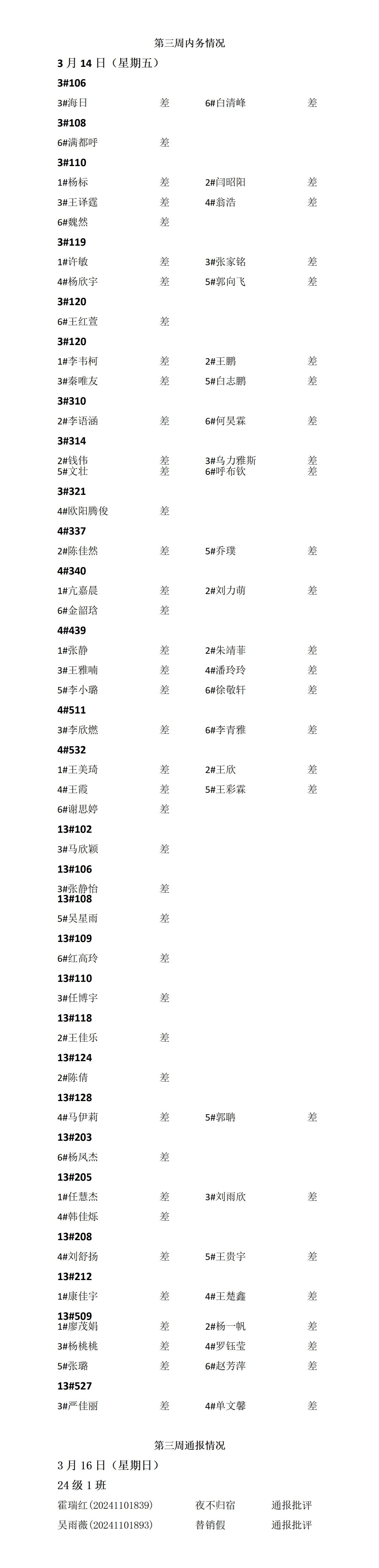 必赢242net官网2024——2025年度第二学期第三周通报情况