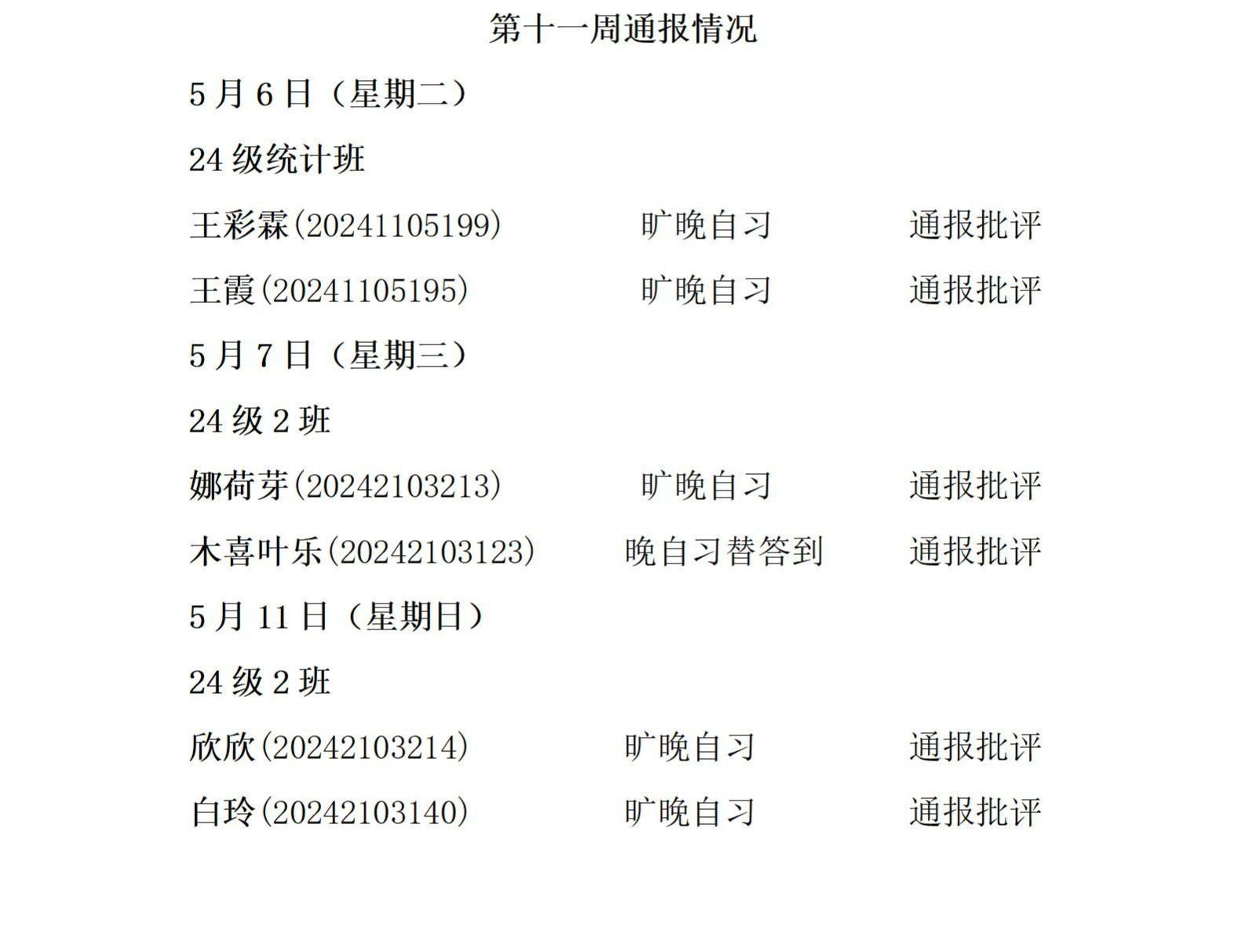 必赢242net官网2024——2025年度第二学期第十一周通报情况