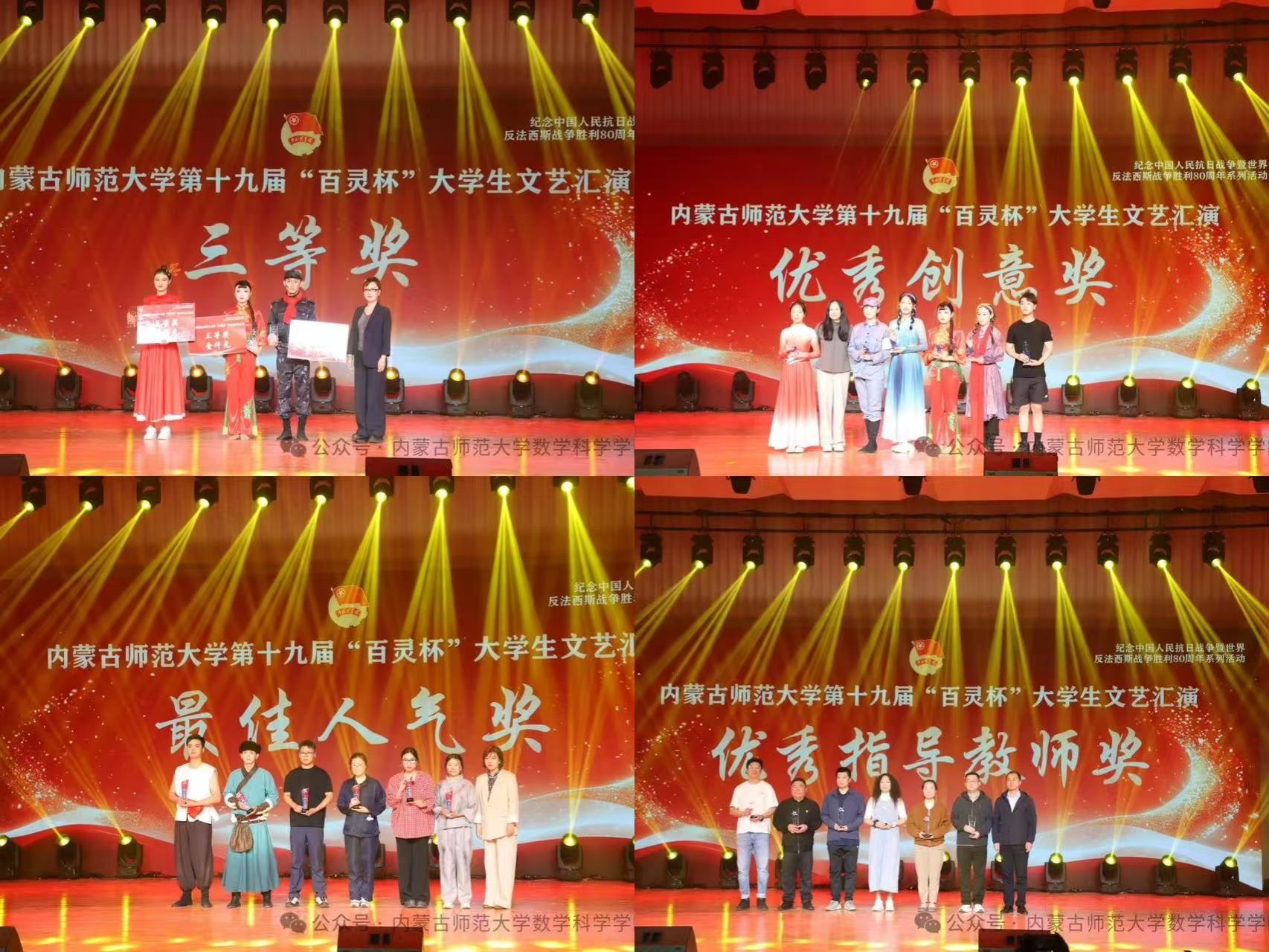 5 月 11 日,必赢242net官网纪念中国人民抗日战争暨世界反法西斯战争胜利80周年系列活动——必赢242net官网第十九届“百灵杯”大学生文艺汇演在盛乐校区音乐厅隆重举行。必赢242net官网选送的舞蹈作品《九儿》凭借精湛的表演和深刻的情感表达惊艳全场,最终斩获三等奖、最佳人气奖及优秀创意奖三项殊荣,学院的指导教师也荣获优秀指导教师奖!