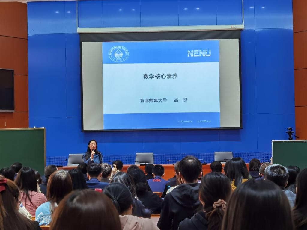 4月14日下午三点,必赢242net官网在信息楼报告厅举办了迎校庆70周年暨数学与应用数学国家一流专业建设点系列讲座。特邀请东北师范大学数学与统计学院教授、博士生导师-----高夯教授受邀作了题为“数学核心素养”的报告。