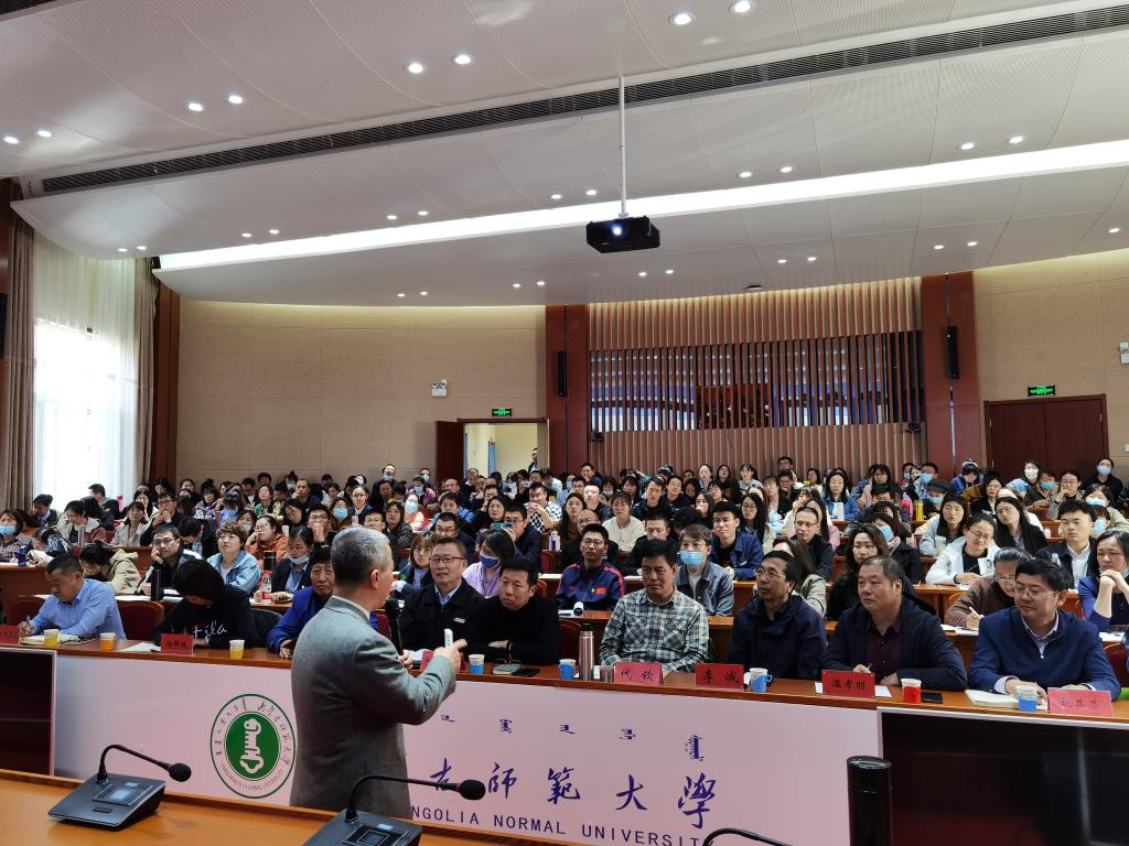 本次讲座由必赢242net官网副院长包霞老师主持,必赢242net官网党委书记、院长扎其劳教授、学科(教育)数学学位点负责人李春兰教授、科学技术史研究院代钦教授和内蒙古自治区教研室、呼和浩特市中学数学教研室成员、呼和浩特市中学数学教师及数学教育方向的研究生,共300多名师生聆听了报告。