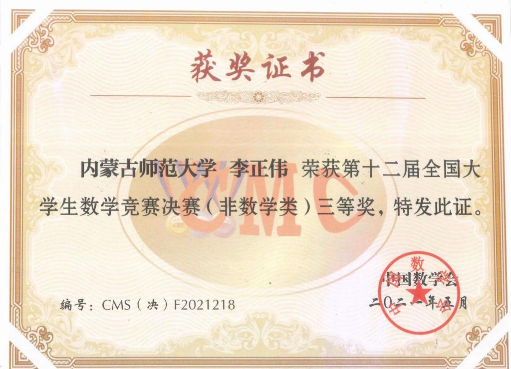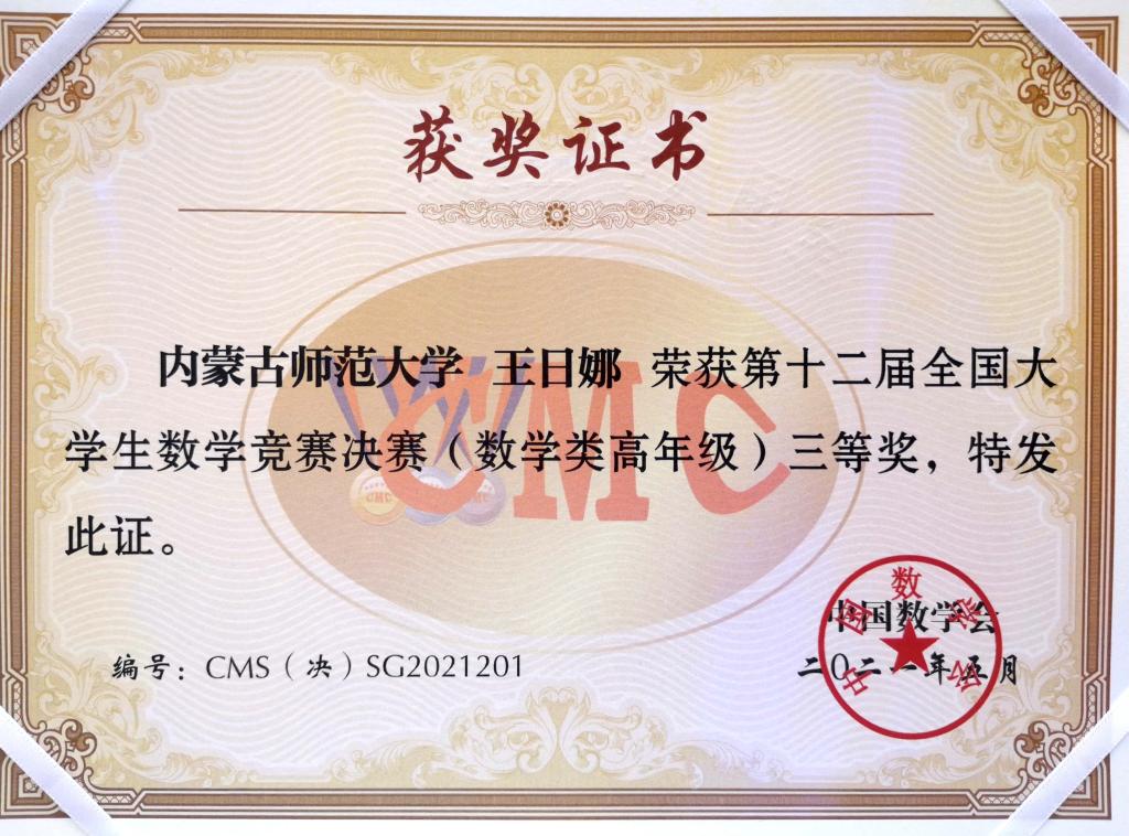 2021年5月14-16日,第十二届全国大学生数学竞赛决赛在吉林大学成功举办。必赢官网学子首次入围全国总决赛,取得了可喜的成绩。经过激励角逐,由必赢242net官网耿俊老师指导的2018级王日娜同学获得了数学类高年级组全国三等奖、经济管理学院2019级李正伟同学获得了非数学类全国三等奖,实现了必赢官网在该项赛事国奖零的突破。