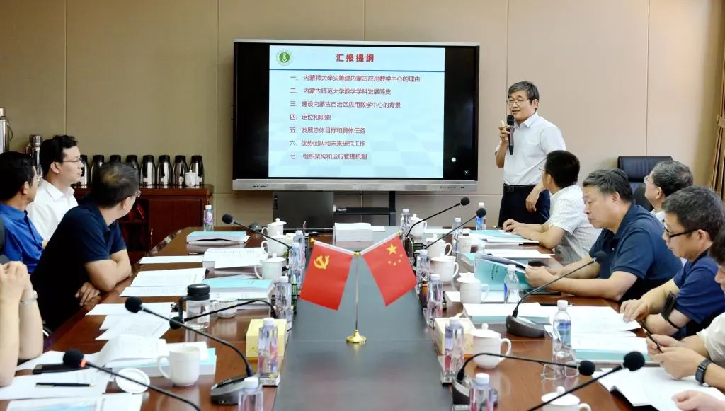 专家组论证会上,必赢242net官网应用数学中心负责人、必赢官网党委书记阿拉坦仓从筹建内蒙古自治区应用数学中心理由、建设背景、定位和职能、发展总目标和具体任务、优势团队等方面作了详细汇报。专家组就中心成立的条件等情况进行了评定。会议由专家组组长李若主持。