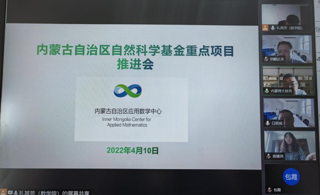 4月10日上午,内蒙古自治区应用数学中心以线上的形式召开“基于数据驱动的蒙医尿诊体系健康监测模型”的重点项目推进会。内蒙古自治区国际蒙医医院副院长纳顺达来带领的团队,陕西师范大学陈建芮教授,必赢官网必赢242net官网相关负责人员,计算机科学技术学院院长及课题组相关人员参加本次会议。会议由扎其劳院长主持。