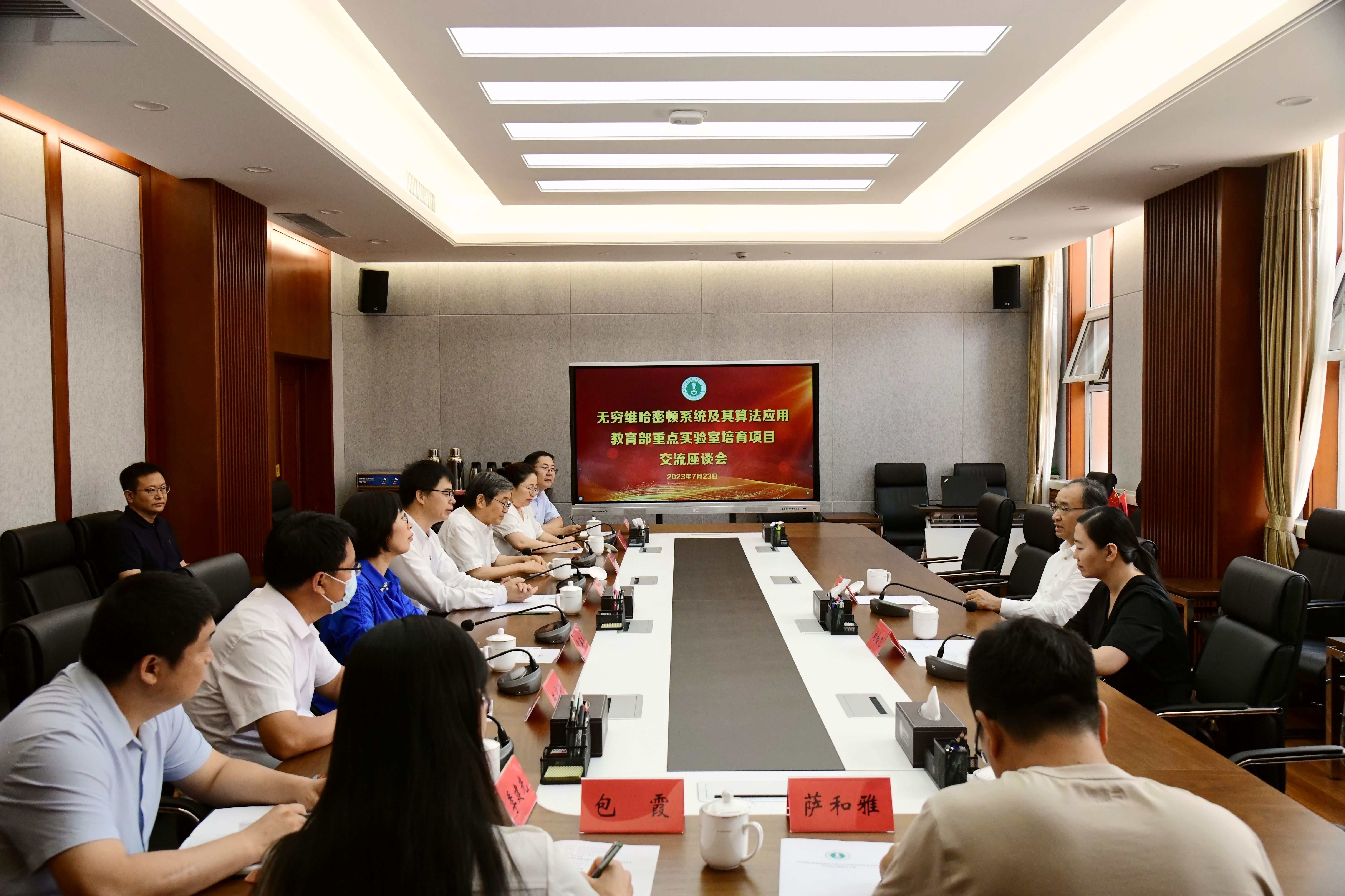 座谈会由副校长贾美林主持。在座谈会后,调研组实地考察了教育部重点实验室办公场所,了解了教育部重点实验室下设高性能计算中心的算力和部分在研项目的研究进展。