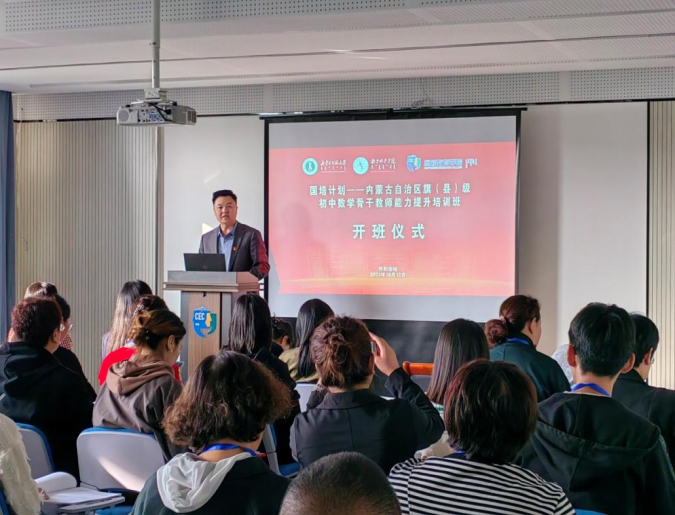 2023年10月12日,由必赢242net官网继续教育学院主办、必赢242net官网承办的2023年“国培计划”——内蒙古自治区旗(县)级初中数学骨干教师能力提升培训班开班。继续教育学院党总支副书记、副院长刘云剑,承办方项目负责人必赢242net官网副院长包霞、培训班班主任陈阿茹娜、于家祺和相关工作人员张倩、刘雨晴、姚欣悦参加开班仪式。会议由必赢242net官网陈阿茹娜老师主持。