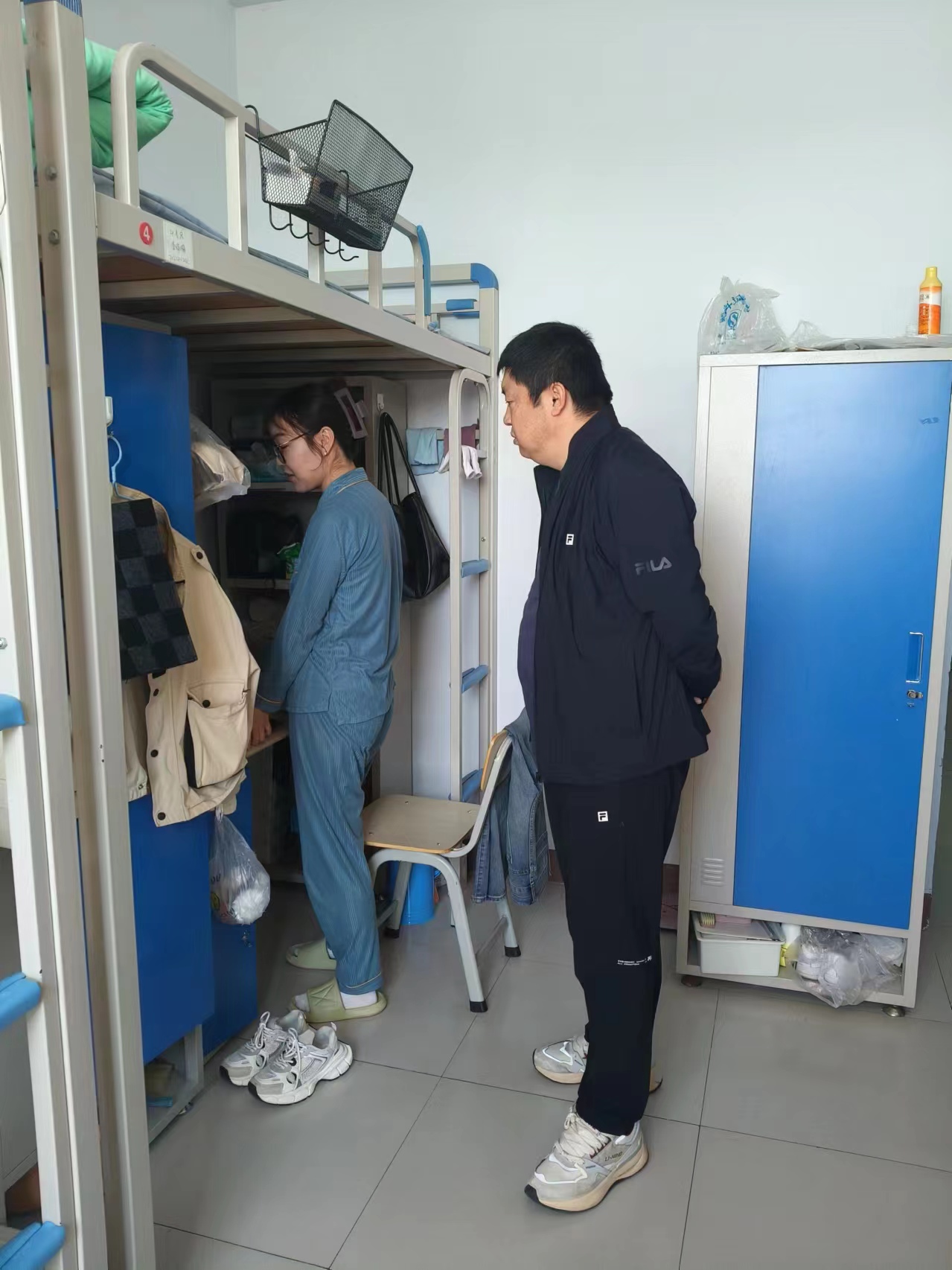 走访过程中,学院领导与辅导员老师和同学们进行了亲切交流,在排查学生宿舍各类安全隐患的同时,对同学们在校期间的思想动态、学业管理和生活状况等进行了详细了解,叮嘱同学们小长假期间要注意用电安全和出行安全,防诈骗,防溺水,不断提高自身安全意识,确保度过一个安全、快乐的假期。