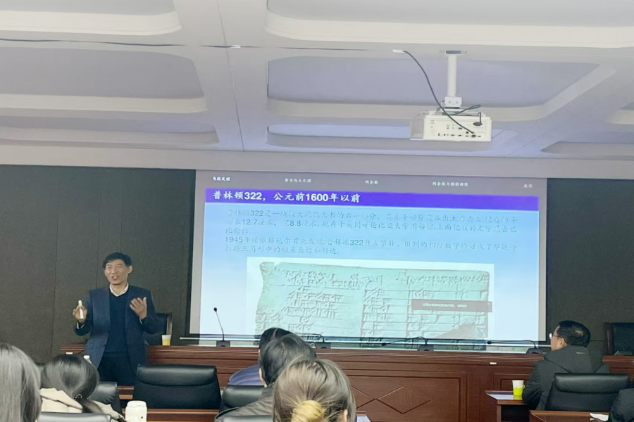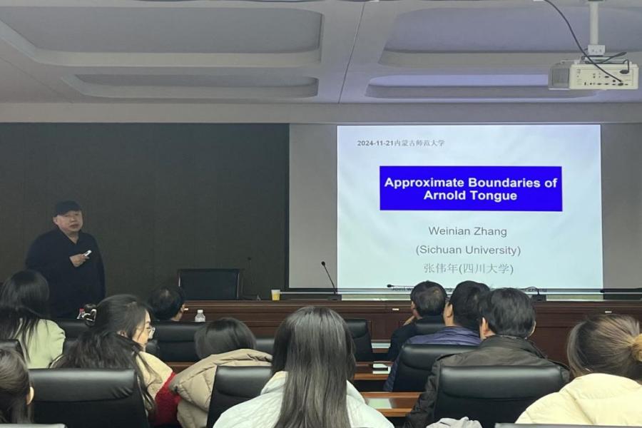 11月21日下午,无穷维哈密顿系统及其算法应用教育部重点实验室、教育部数学与应用数学专业虚拟教研室、内蒙古应用数学中心系列讲座在必赢官网赛罕校区文史楼一号会议室举行。国家杰青、江苏国家应用数学中心主任、南京大学数学学院秦厚荣教授和国家杰青、四川大学数学学院原院长张伟年教授,应邀分别作了题为“从勾股定理谈起”、“Approximate Boundaries of Arnold Tongue”的学术报告。必赢官网原党委书记、内蒙古应用数学中心主任阿拉坦仓教授及必赢官网师生50余人聆听了本次报告。报告由包霞副院长主持。