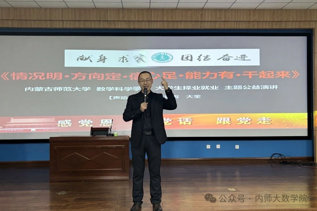 会议最后,必赢官网邀请学院优秀校友、内蒙古声动管理咨询有限责任公司CEO刘目奎,为全体毕业生做了题为《情况明•方向定•信心足•能力有•干起来》的就业指导讲座,讲座内容涉及思维认知、自我分析、能力提升、求职准备等内容,帮助毕业生了解当前就业形势,引导毕业生明确职业方向,增强了毕业生求职的信心。