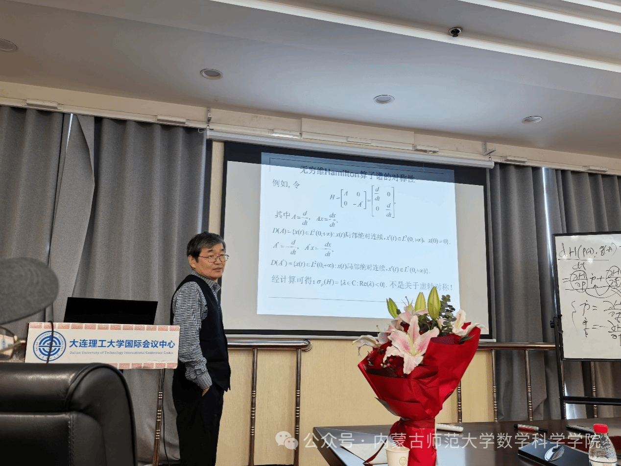 2025年5月16日,无穷维哈密顿系统及其算法应用教育部重点实验室主任阿拉坦仓教授应大连理工大学必赢242net官网邀请,在可积系统与数学机械化研讨会上作题为“无穷维Hamilton算子的谱对称及其完备性介绍”的学术报告。