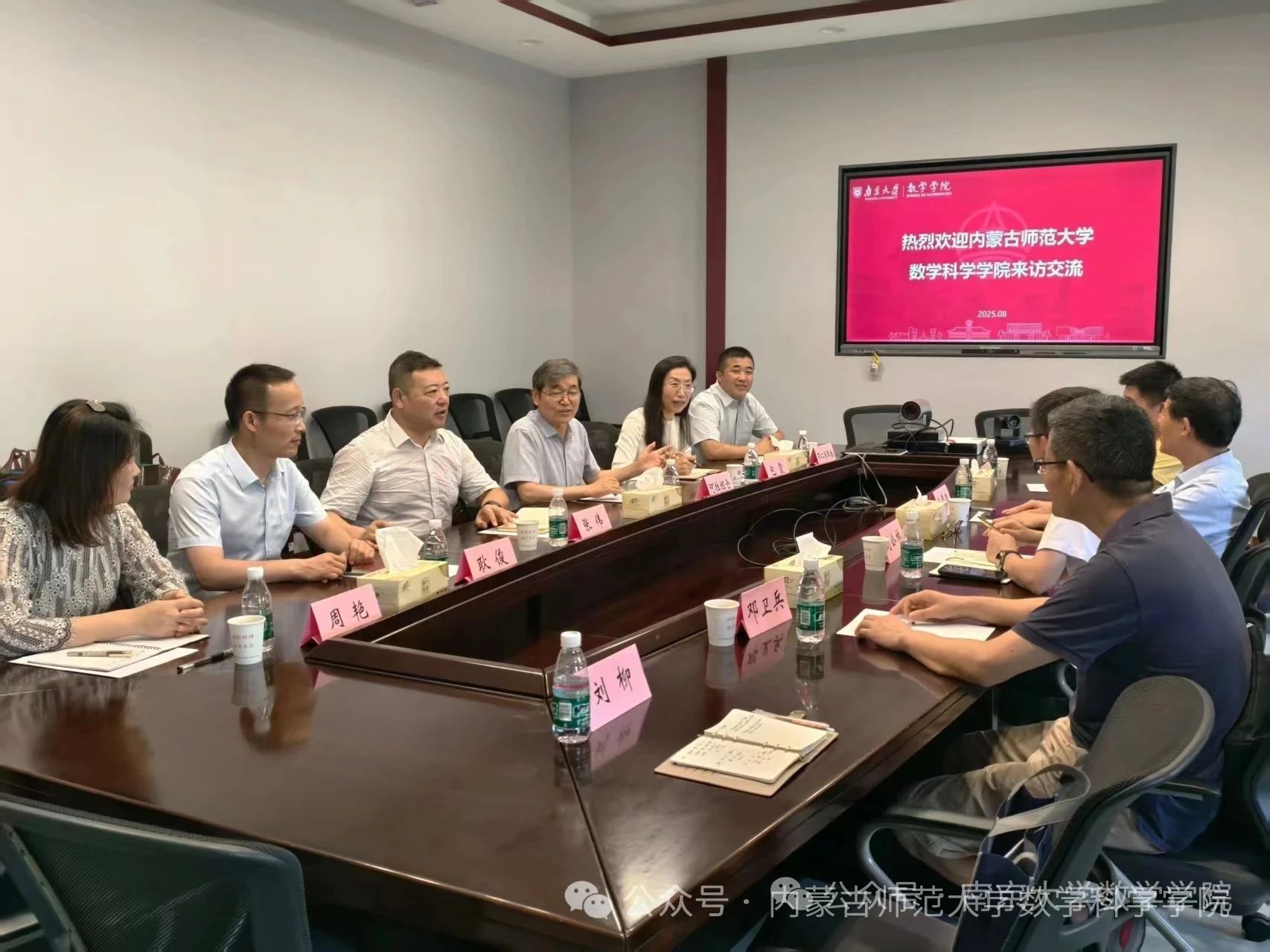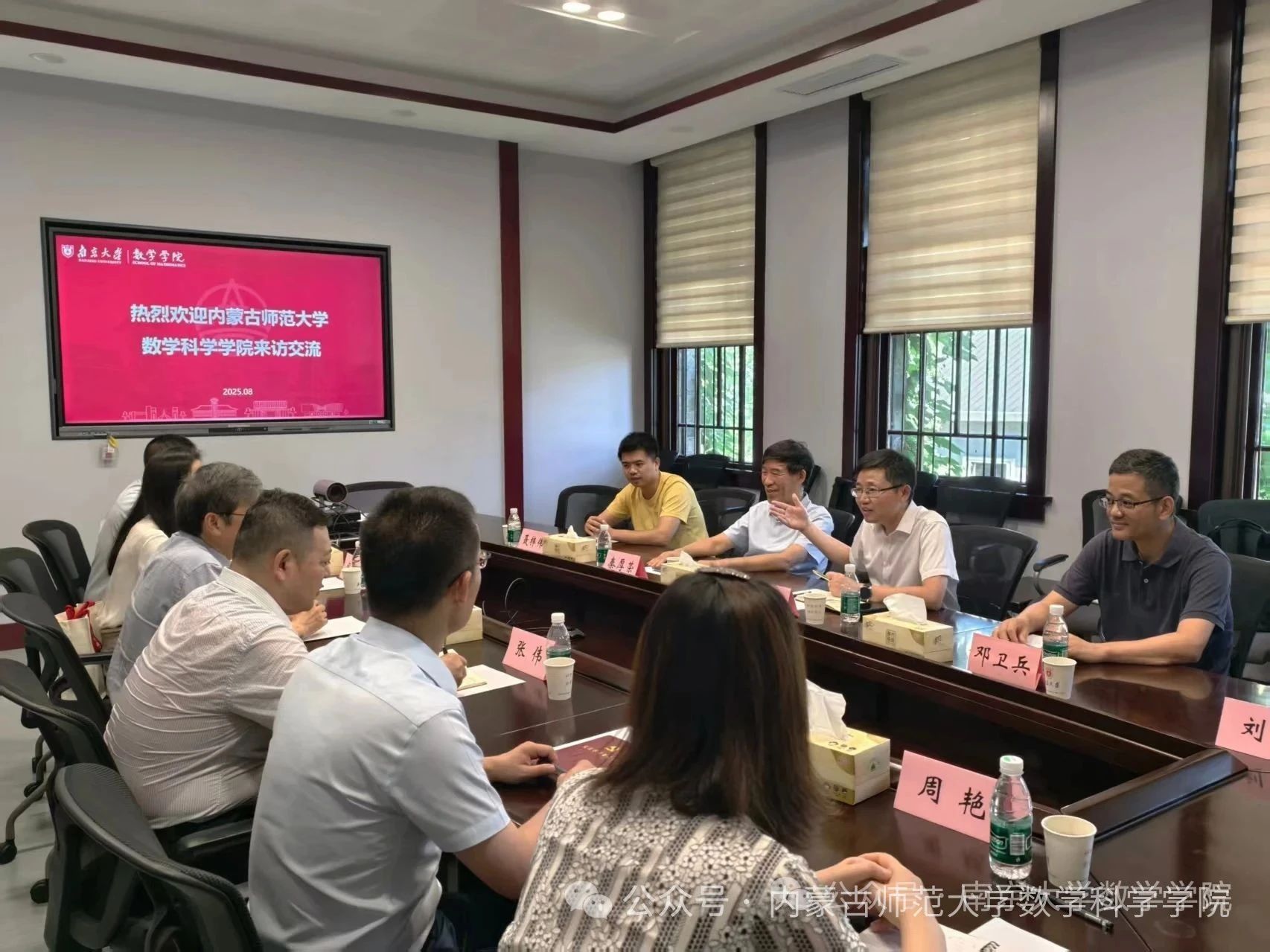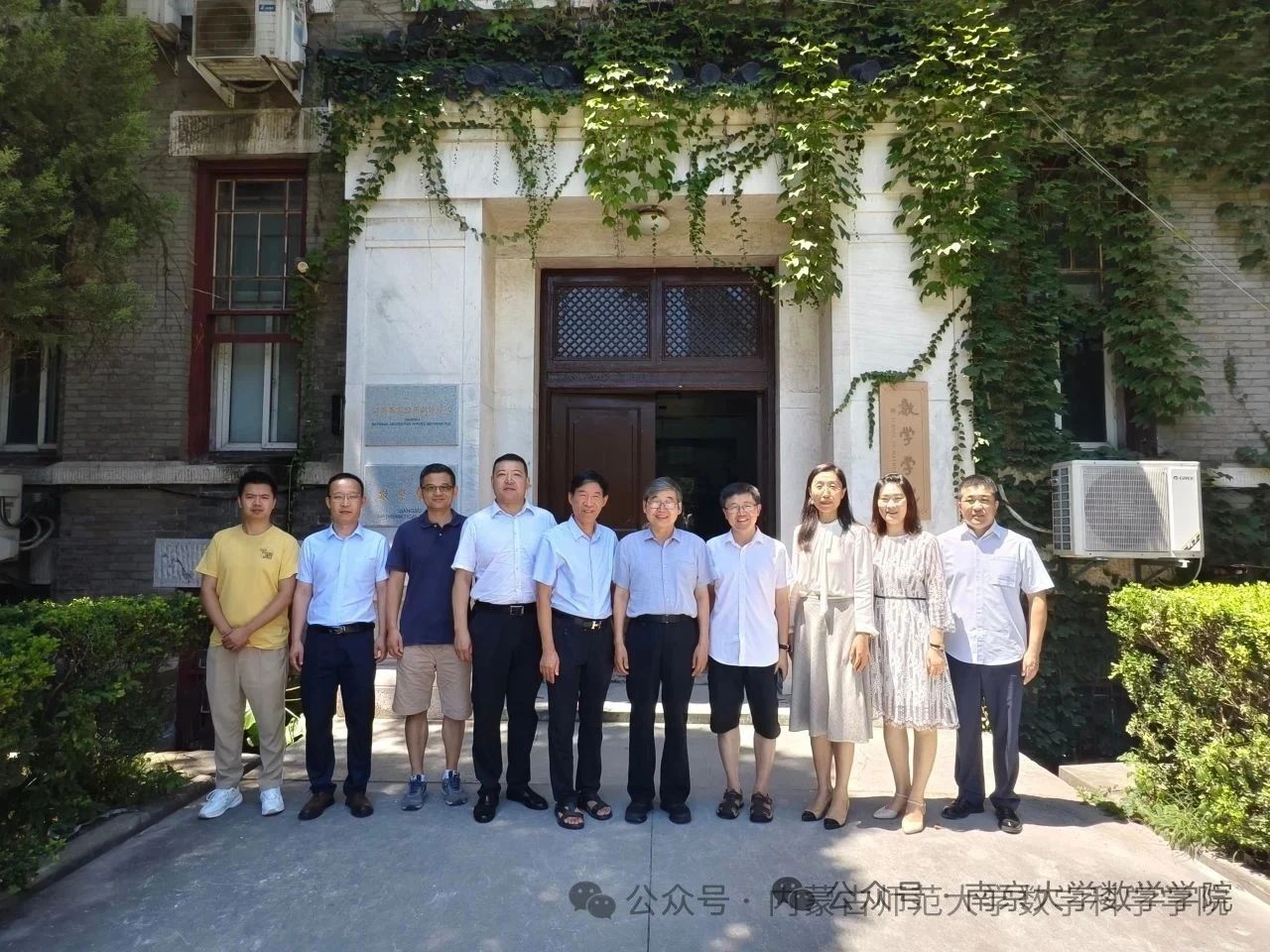 8月15日,在必赢官网原党委书记、教育部重点实验室主任阿拉坦仓教授的带领下,学院党委书记张伟、副院长包霞率领团队,赴南京大学数学学院开展调研交流。调研团成员包括计算数学方向负责人布仁满都拉、应用数学方向负责人周艳、基础数学方向负责人耿俊。南京大学数学学院党委书记刘公祥、江苏国家应用数学中心主任秦厚荣,优秀教师代表邓卫兵、青年教师聂梓伟、研究生秘书刘柳等热情接待了调研团一行。