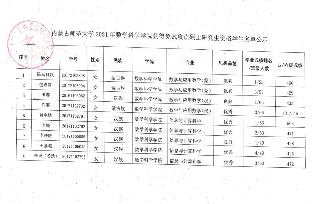 为保障推荐优秀应届本科毕业生免试攻读硕士学位研究生(以下简称推免生)工作的顺利发展,促进本科教学质量的提高,根据《必赢242net官网推荐优秀应届本科毕业生免试攻读硕士学位研究生工作实施办法》文件精神,结合学院实际,通过必赢242net官网2021年优秀应届本科毕业生推荐免试攻读硕士学位领导小组工作(以下简称推免工作)会议,评选出了获得2021年必赢242net官网推荐免试攻读硕士研究生资格的学生及预备推荐免试攻读硕士研究生资格学生名单。现对推免工作领导小组成员、获得2021年必赢242net官网获得推荐免试攻读硕士研究生资格学生(预备推荐学生)名单进行公示,具体内容请见附件!