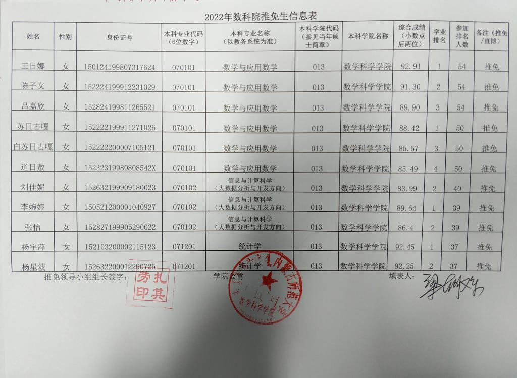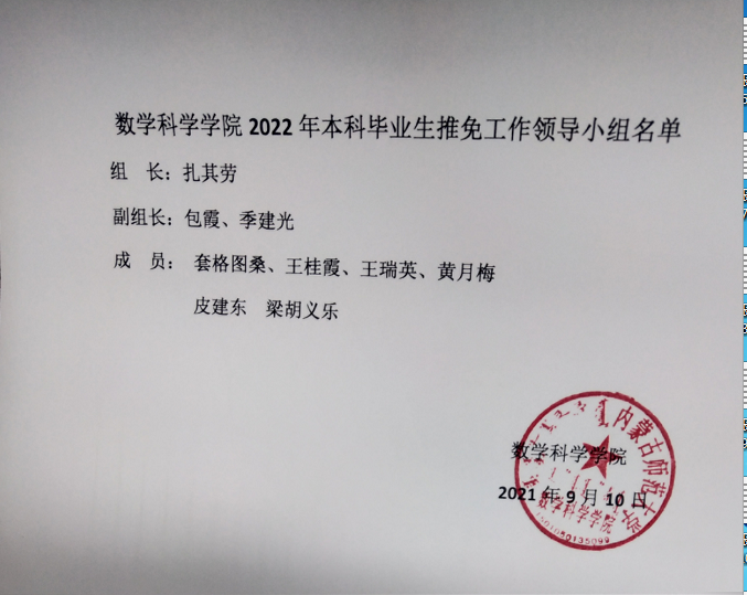为保障推荐优秀应届本科毕业生免试攻读硕士学位研究生(以下简称推免生)工作的顺利发展,促进本科教学质量的提高,根据《必赢242net官网推荐优秀应届本科毕业生免试攻读硕士学位研究生工作实施办法》文件精神,结合学院实际,通过必赢242net官网2022年优秀应届本科毕业生推荐免试攻读硕士学位领导小组工作(以下简称推免工作)会议,评选出了获得2022年必赢242net官网推荐免试攻读硕士研究生资格的学生及预备推荐免试攻读硕士研究生资格学生名单。现对推免工作领导小组成员、获得2022年必赢242net官网获得推荐免试攻读硕士研究生资格学生(预备推荐学生)名单进行公示,具体内容请见附件!