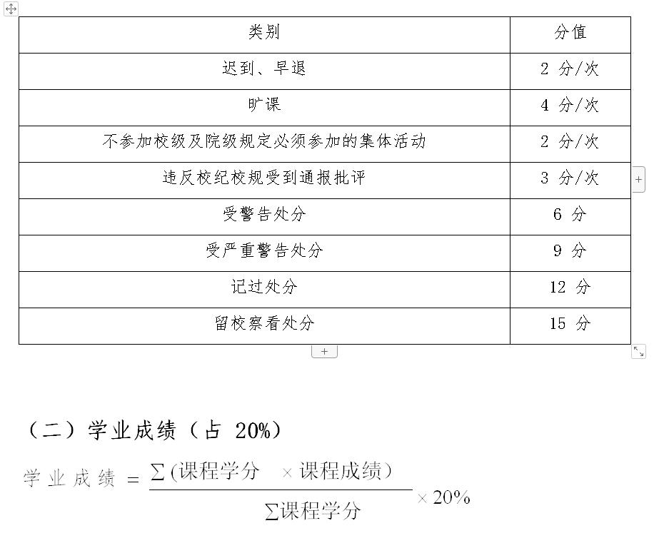 日常表现得分=表彰加分+任职加分+文体竞赛加分+专业竞赛加分+ 思想政治教育类活动加分+劳动教育加分-减分。加减分完成后需要制成记分情况登记表,且要有佐证材料(原件+复印件),审核后方可加分。