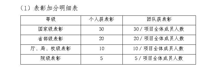 说明:同一项目获得不同级别的立项,以最高级别的立项对应加分,以立项通知书或任务书上的项目执行时间为准, 项目执行时间跨入综合测评学年度才有效,同一项目在上一学年综合测评时已使用,不再第二学年测评中进行加分 ,即只计算一次。