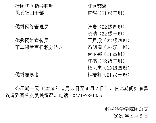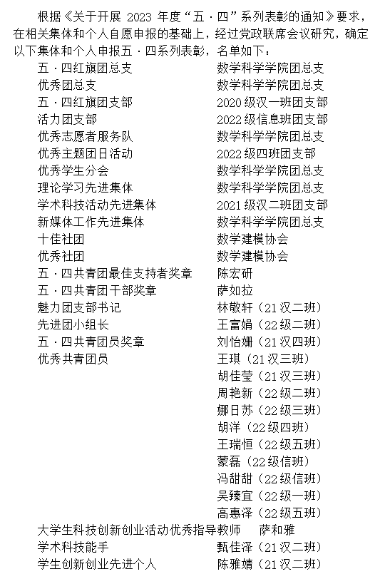 必赢242net官网2023年度“五·四”系列表彰推荐名单公示