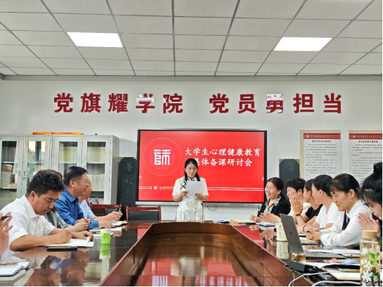 高校大学生心理健康教育课程是对大学生开展心理健康教育的主渠道,为切实提高新葡官网大学生心理健康教育课程教学质量,新葡8883官网AMG官网公共课教研室于2025年9月17日组织集体备课教研活动,本次会议由新葡8883官网AMG官网公共课教研室主任王薇老师主持,新葡8883官网AMG官网领导班子全体成员、学生处副处长张瑞庆、高等教育研究中心副主任郝静出席了本次研讨活动并作发言。