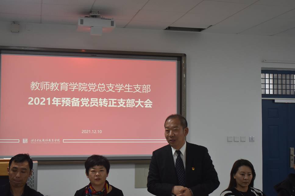 12月10日中午,新葡官网党总支学生支部在E-3-109召开预备党员转正大会,讨论贾子畅、付双璐、张文雅三位同志的转正问题。本次会议,新葡官网党总支书记马立志列席,党总支副书记张瑞红以及学生支部全体师生党员参加。
