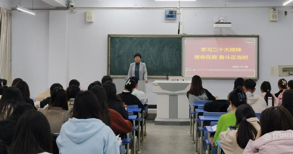 1120日,新葡官网党总支副书记张瑞红以《学习二十大精神 使命在肩 奋斗正当时》为全院学生党员和入党积极分子讲授专题党课。