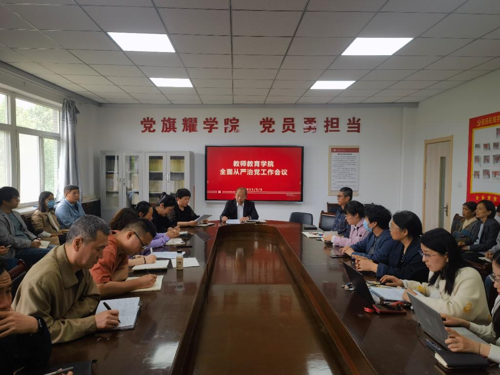 为纵深推进全面从严治党,不断打磨教书育人队伍,5月6日下午,新葡官网召开全面从严治党工作会议,研究部署下步工作。学院领导班子成员、总支委员以及全体教师参会。