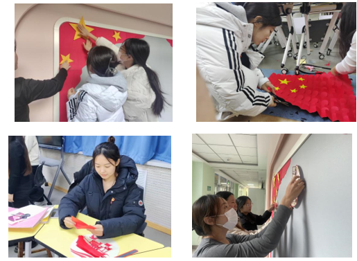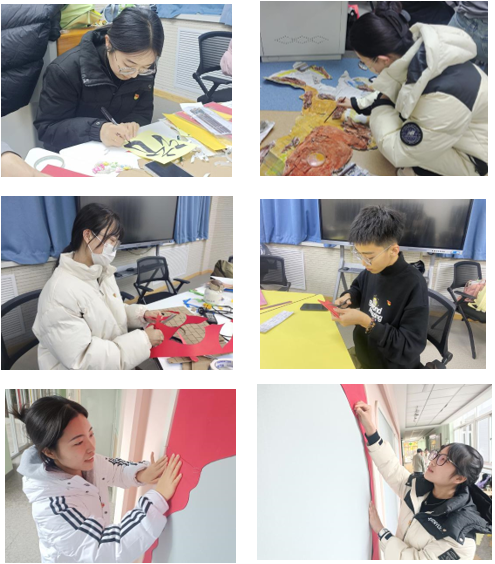 此次环境创设以“红色革命”为主题。活动开始前党员们进行了明确的分工,活动期间大家制作五星红旗、南湖红船、名人卡片等手工作品,并将亲手制作的作品粘贴在楼道的文化墙上。党员们同志们高质量的完成了楼道环境创设工作,展现出昂扬向上的精神状态和良好的志愿服务精神。